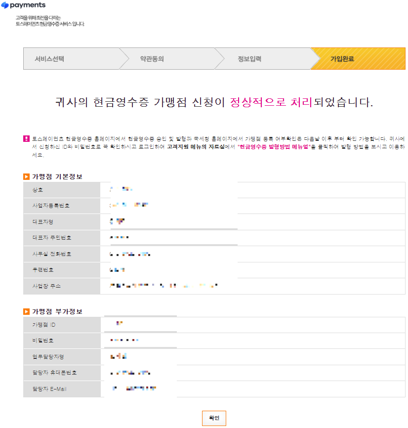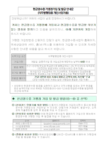 현금영수증 발급 서비스 가입 완료!