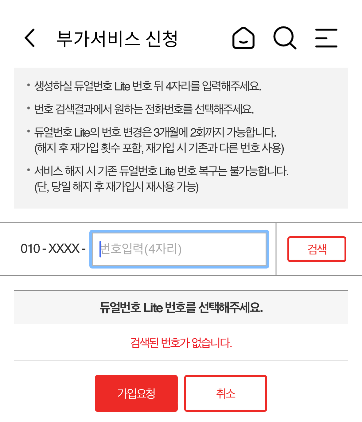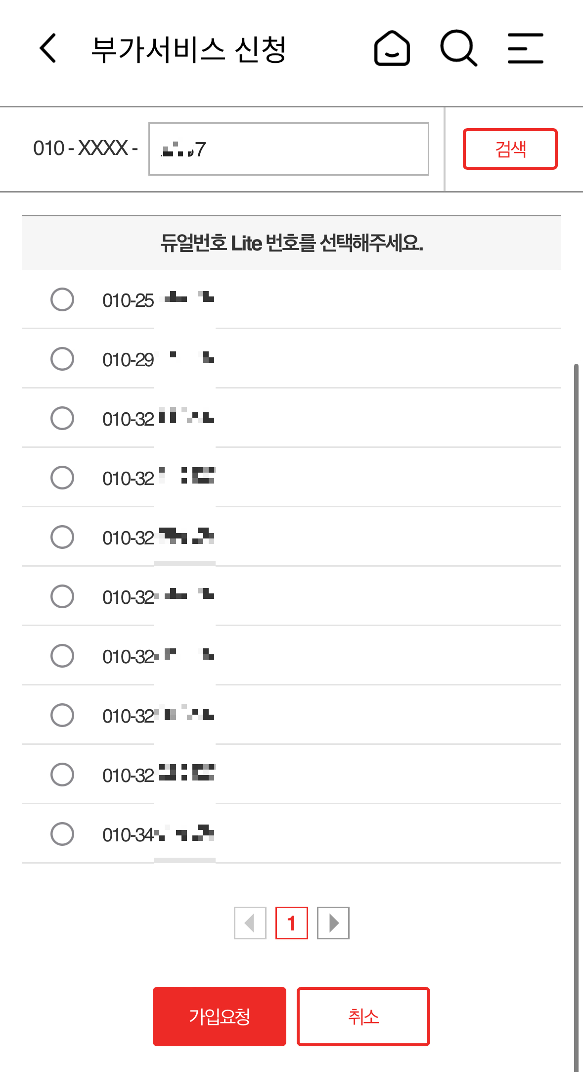무튼, 저도 원하는 번호를 검색해서 그중에 가장 마음에 드는 번호를 골랐어요. [가입요청]을 클릭하면 끝! 정말 간단하죠?