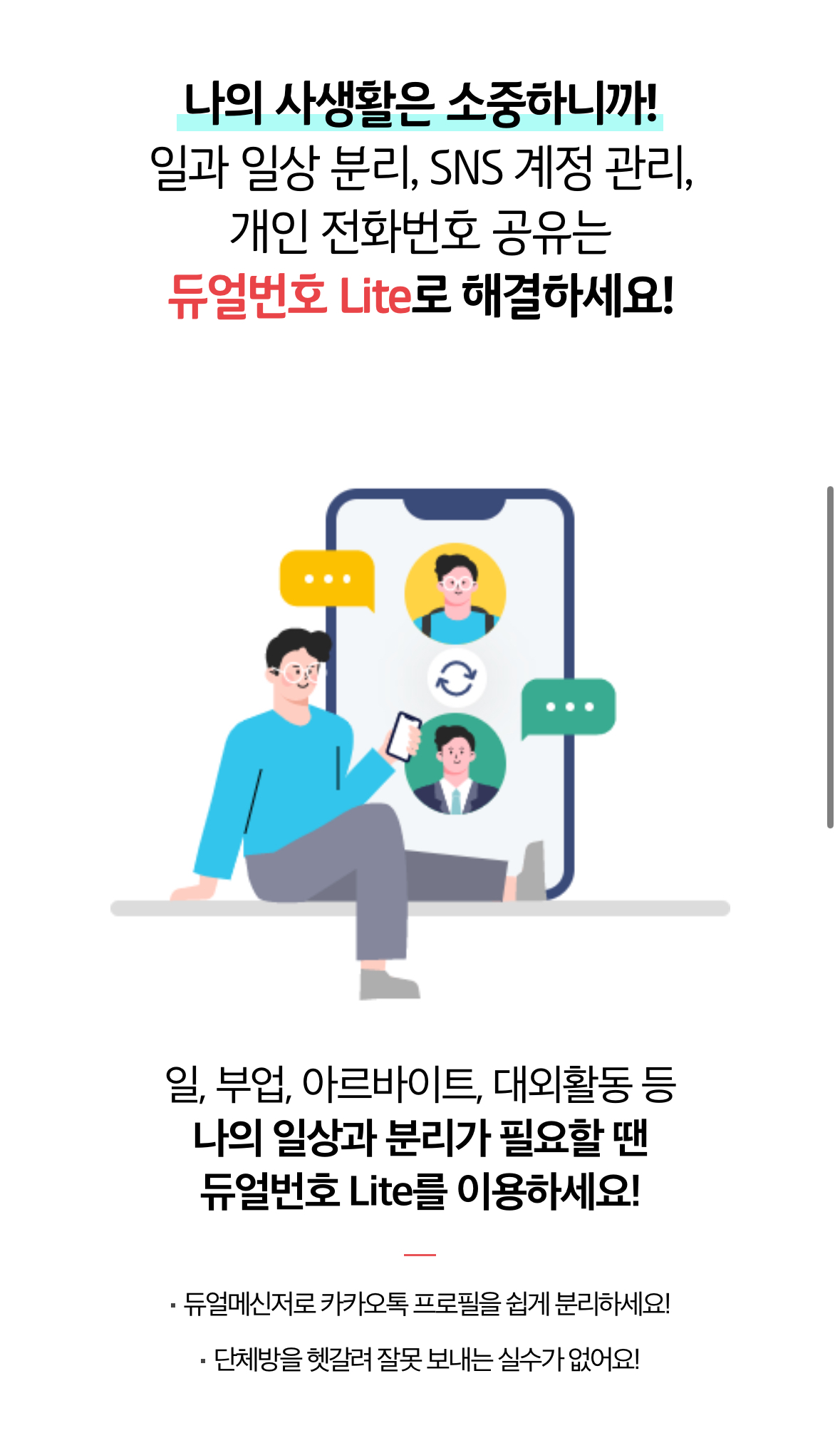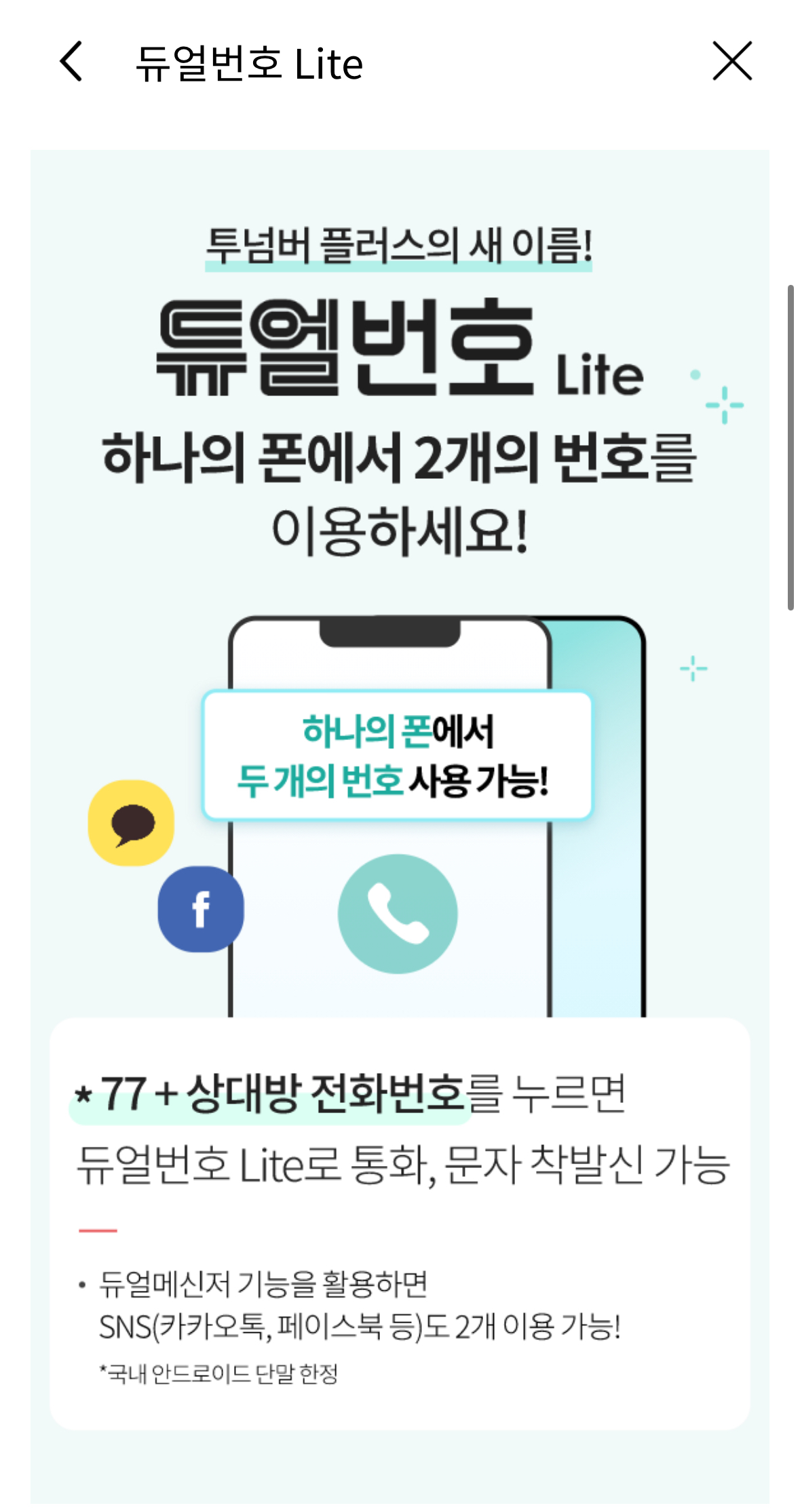 안드로이드 단말기 한정으로 SNS도 2개로 이용가능하다고 해요. 아이폰 유저인 제게는 해당사항이 없어서 아쉬운 ㅠㅠ