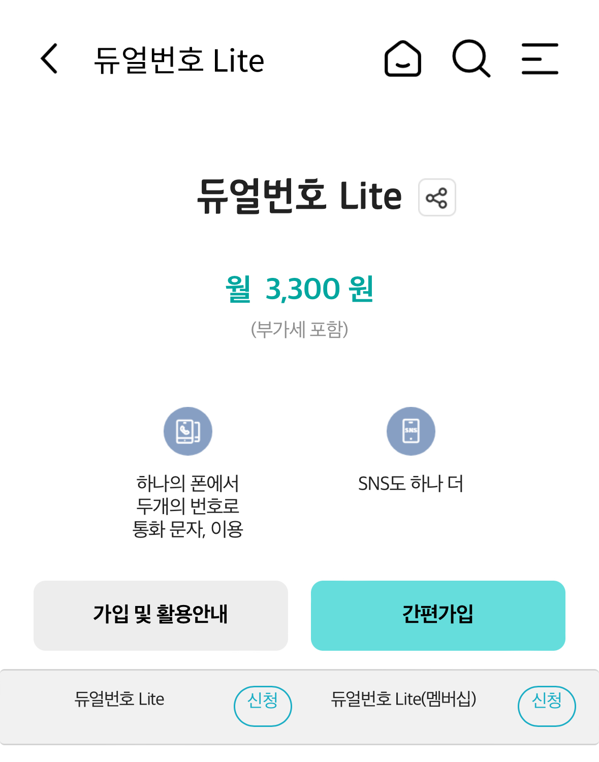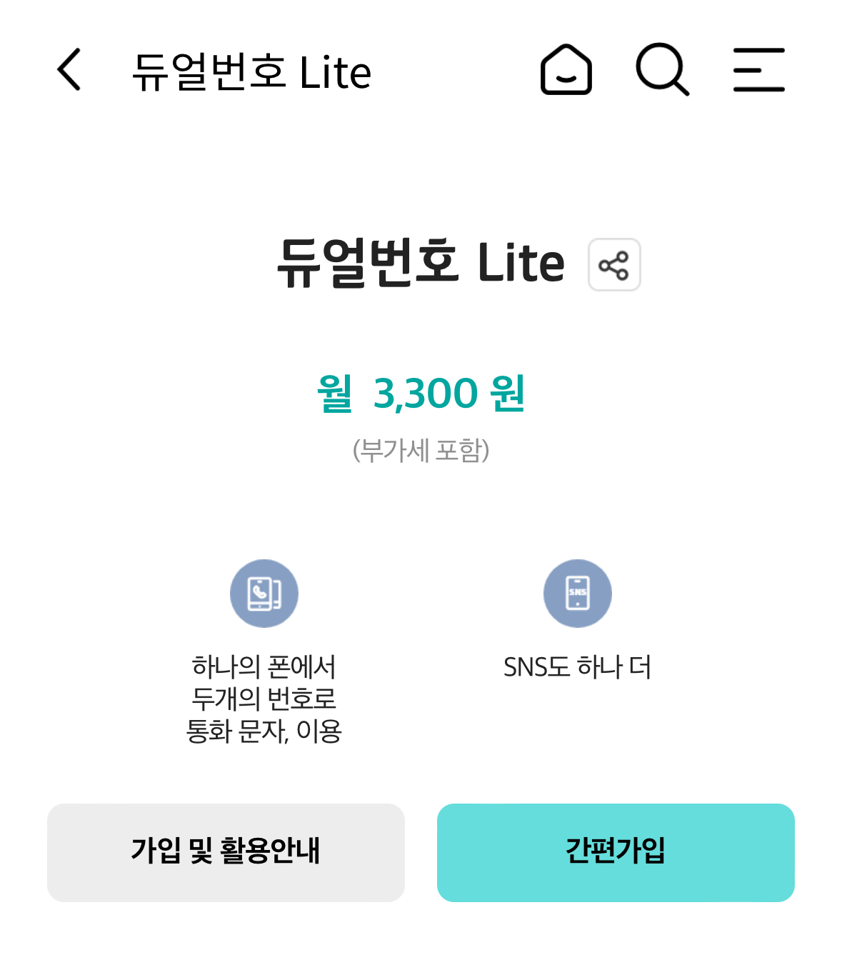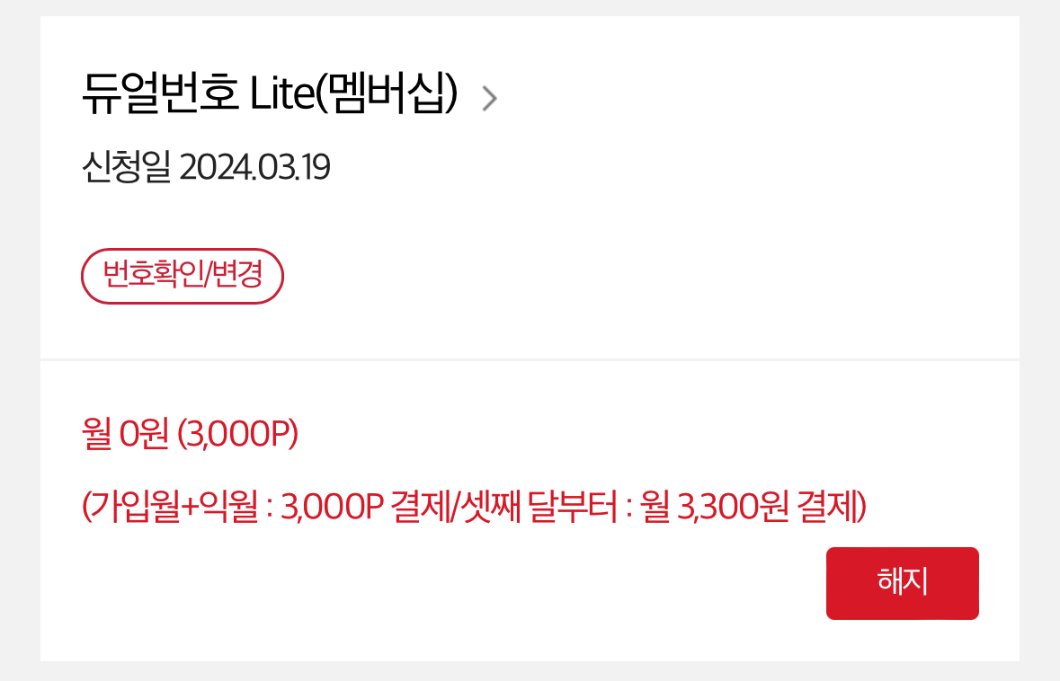KT듀얼번호 Lite 셋째 달 부터 월 3,300원