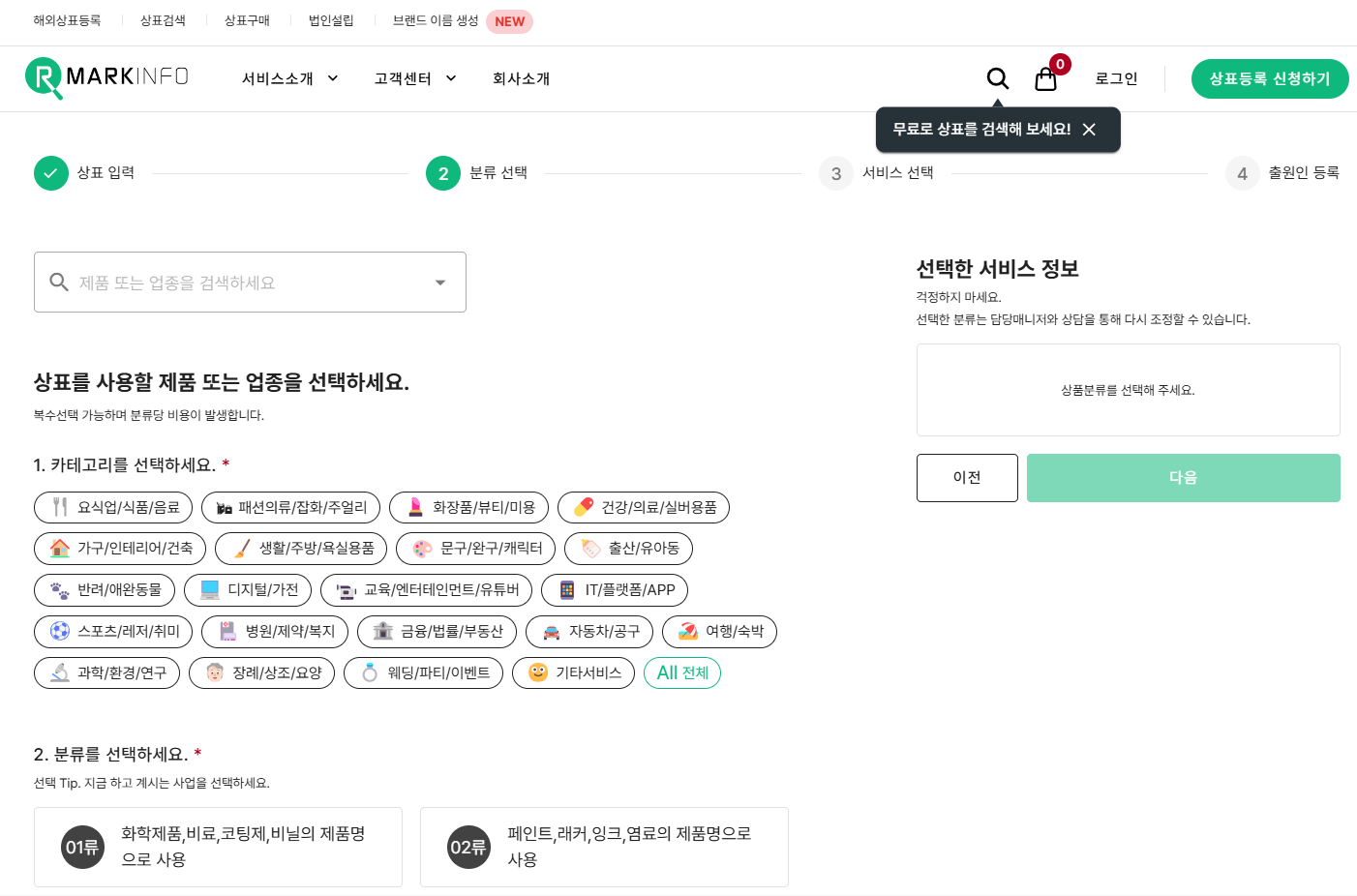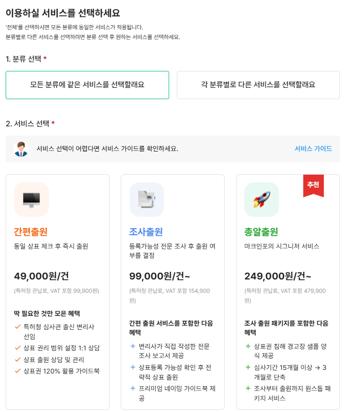 제품을 고르면 분류까지 딱 깔끔하게 나와서 고르기가 정말 쉽더라구요. 제 지인도 마크인포로 브랜드 상표등록을 완료했는데, 만족하는 걸 보니 괜찮은 선택지 인 것 같아요.
