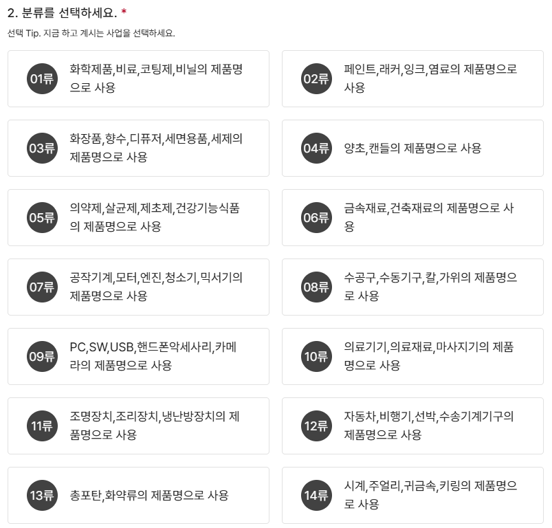 분류 종류는 몇십가지가 있는 줄 알았는데, 몇 만가지가 있는 것 같더라구요. 그런데 마크인포는 손쉽게 분류를 해두셔서 확실히 왜 대리 업체를 이용하는지 이해가 되어요. 제가 실제로 신청해보니 머리 터질 뻔 .. 반려 되어도 어쩔 수 없을 듯 해요 ..