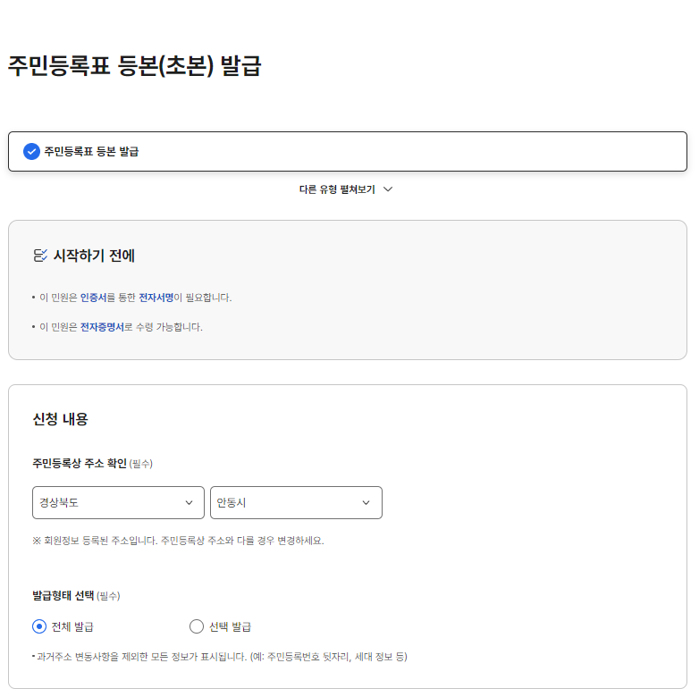 주민등록표 등본(초본) 발급 | 민원안내 및 신청 |정부24