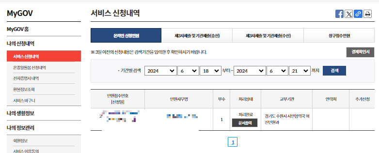 신청하기 버튼을 클릭하고, 서비스 신청내역으로 넘어가면 바로 문서출력이 가능해요. 승인도 필요없이 신청이 되면 바로 인쇄할 수 있는 시스템!