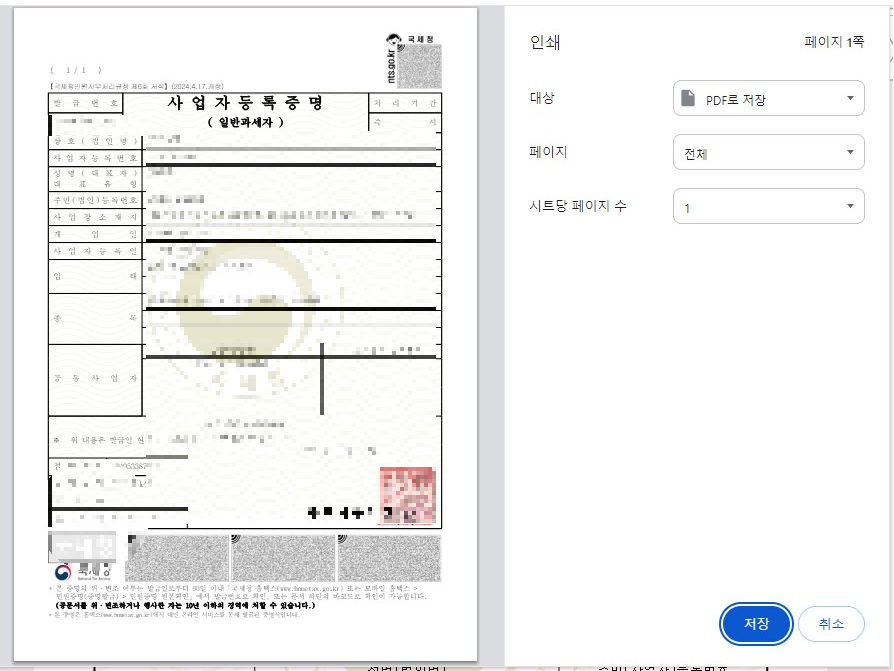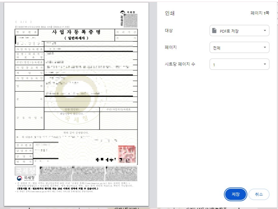 PDF 저장이 가능해서 바로 저장 후 관공서에 제출까지 완료!