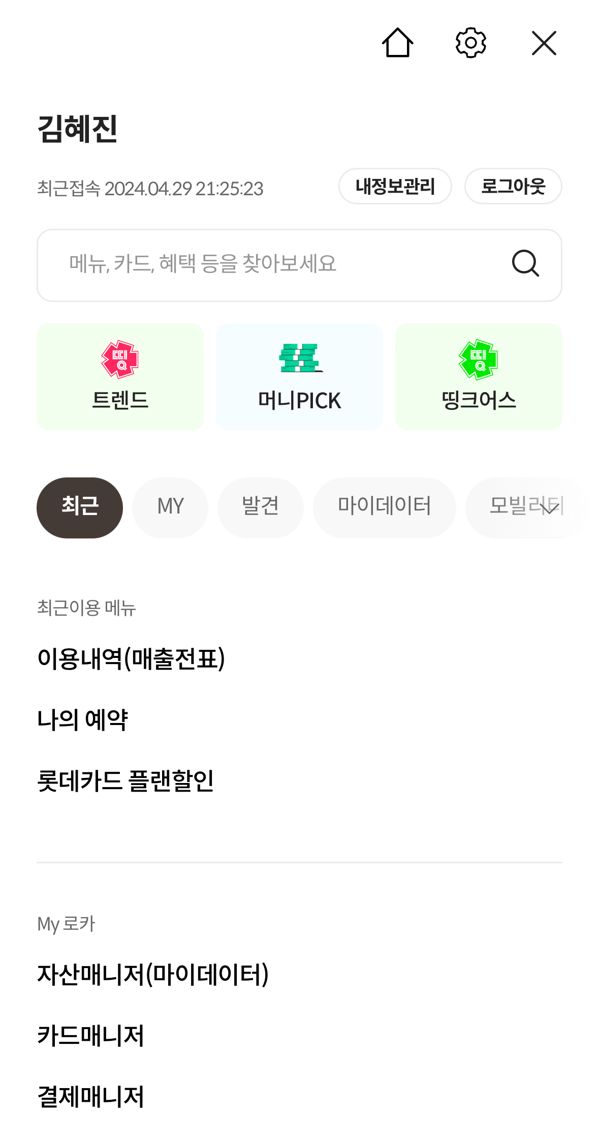 롯데카드 사용내역 조회, 로카앱에서 간편하게